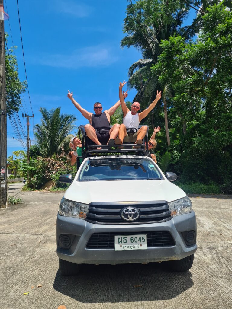 Odkrywaj piękno Koh Samui podczas ekscytującej wycieczki jeepem safari. Bezpieczeństwo jest naszym priorytetem, podczas gdy zabawa gwarantowana. Odwiedź ikang, zobacz zmumifikowanego mnicha i ciekawostkę wyspy – Skały Dziadka i Babci. Smaczny Tajski lunch oraz wizyta w górach i świątyni z punktem widokowym dopełnią tej niezapomnianej wycieczki.